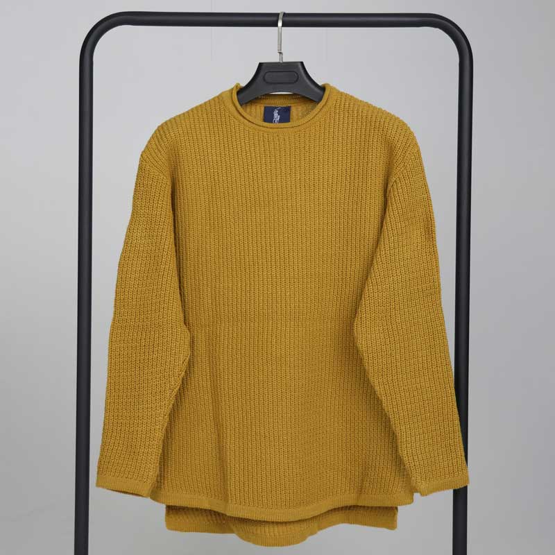 ویژگیهای بافت یقه گرد درشت استایل فریسایز رنگ خردلی | کد BA15: