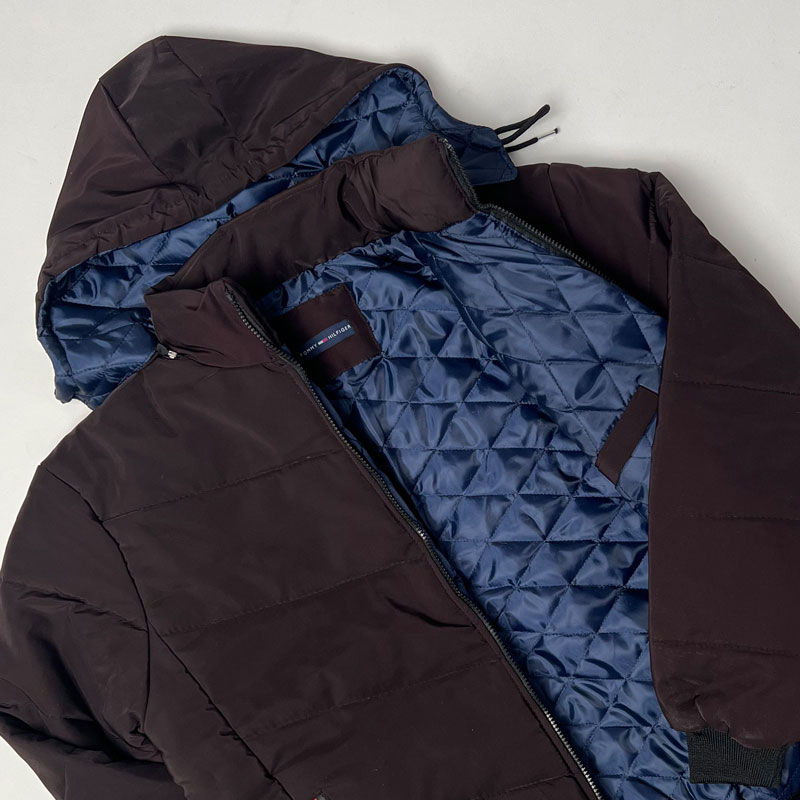 کاپشن مردانه مدل تامی دارای کلاه با قابلیت جدا شدن است تا بسته به شرایط آبوهوا یا استایل شخصی، بتوانید از آن استفاده کنید.
