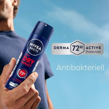 - کنترل تعریق :فرمولاسیون اسپری نیوا مدل DRY دارای فرمولاسیون پیشرفتهای است که تعریق را کنترل میکند و از بوی ناخوشایند بدن جلوگیری میکند. مدت زمان اثر تا 72 ساعت ماندگاری و حفاظت فعال.