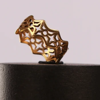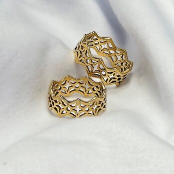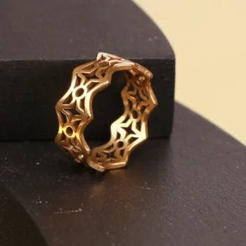 انگشتر زنانه طرح تاج کد AN_TAJ یک انگشترزنانه خاص زیبا و منحصر به فرد است که با طراحی شیک و مدرن خود، جلوهای خاص به استایل شما میبخشد. انگشتر طلایی استیل با عیار بالا ساخته شده است که مقاومت بالایی در برابر زنگ زدگی و تغییر رنگ دارد. طراحی دقیق و هنرمندانه این انگشتر زنانه استیل، آن را به یک انتخاب ایدهآل برای بدلیجات زنانه خود تبدیل کرده است.
