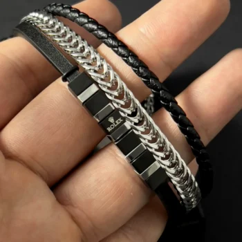 - کیفیت بالا: دستبند سه لاین رولکس کارتیر دار کدDM14 از استیل رنگ ثابت با عیار بالا ساخته شده است که تضمین کننده دوام و کیفیت بالای آن است.و طراحی این دستبند مردانه رولکس با بندهای چرمی مشکی باعث شده که در استفاده روزمره، میتوانید با انگشتر مشکی و ساعت و سایر اکسسوری های دیگه ست کنید.
