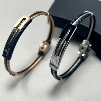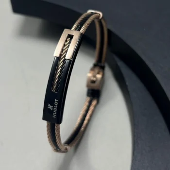 دستبند مردانه مدل هابلوت کدDM21 یک اکسسوری مردانه زیبا و منحصر به فرد است دستبندهابلوت که با طراحی شیک و مدرن خود، جلوهای خاص به استایل شما میبخشد. این دستبند از جنس استیل رنگ ثابت است که مقاومت بالایی در برابر زنگ زدگی و تغییر رنگ دارد. این اکسسوری مردانه دارای سه رنگ مشکی و بژ و طلایی است.طراحی دقیق و هنرمندانه این دستبندمردانه، آن را به یک انتخاب ایدهآل برای هر سلیقهای تبدیل کرده است.
