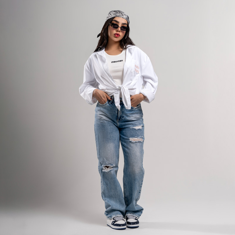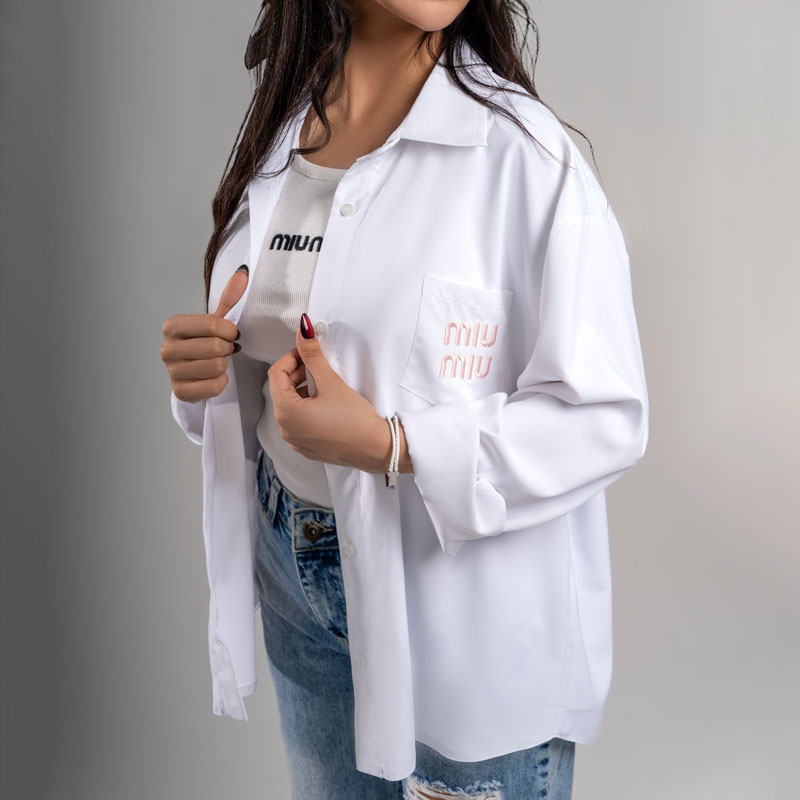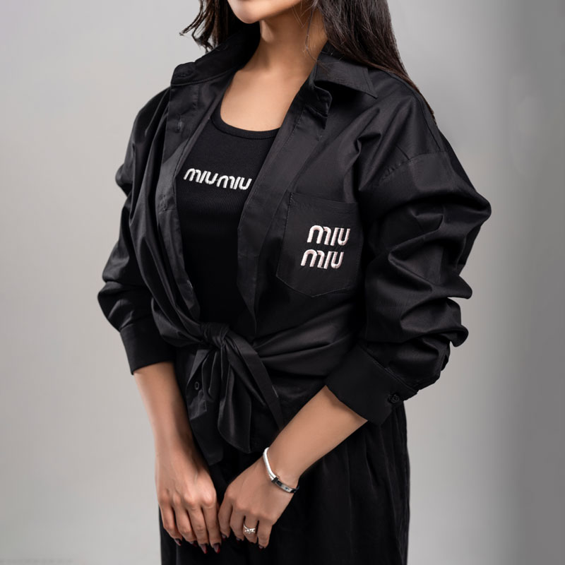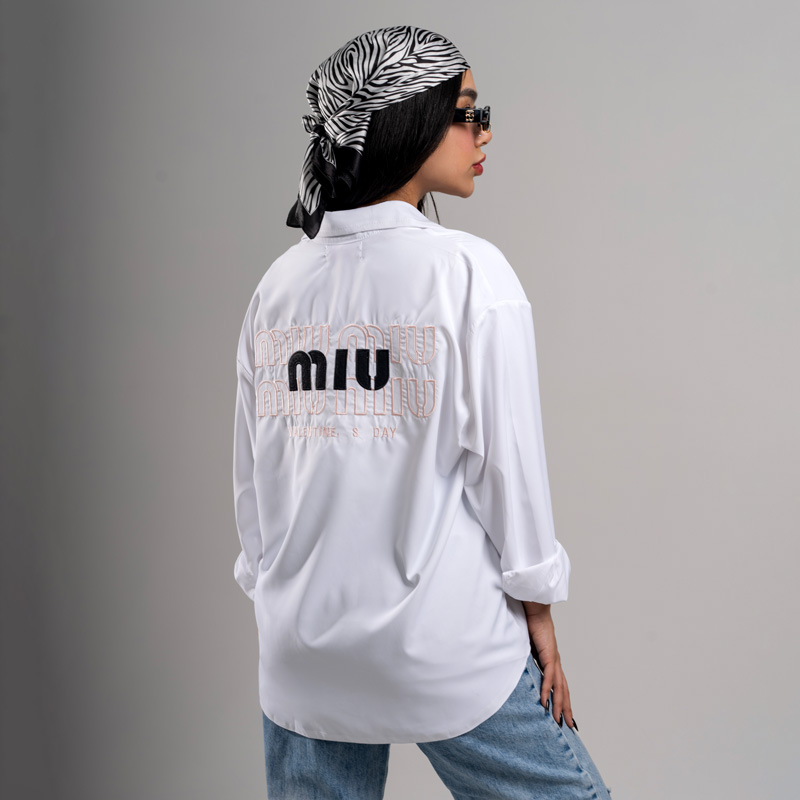 - کراپ شومیز MIU MIU در دو رنگ مشکی و سفید عرضه میشود که انتخابی مناسب برای استایلهای متنوع، مجلسی و نیمه مجلسی است