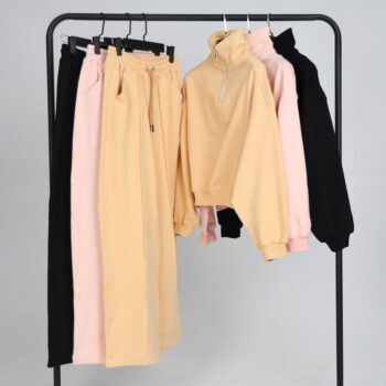 توضیحات ست لباس زمستانه زنانه دورس نیمزیپ با شلوار بگ نخودی | کد DO43: