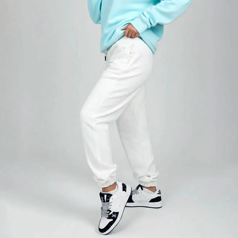 شلوار جاگر ساده سفید دورس سه‌نخ – مناسب خانم‌ها و آقایان | کد SH06