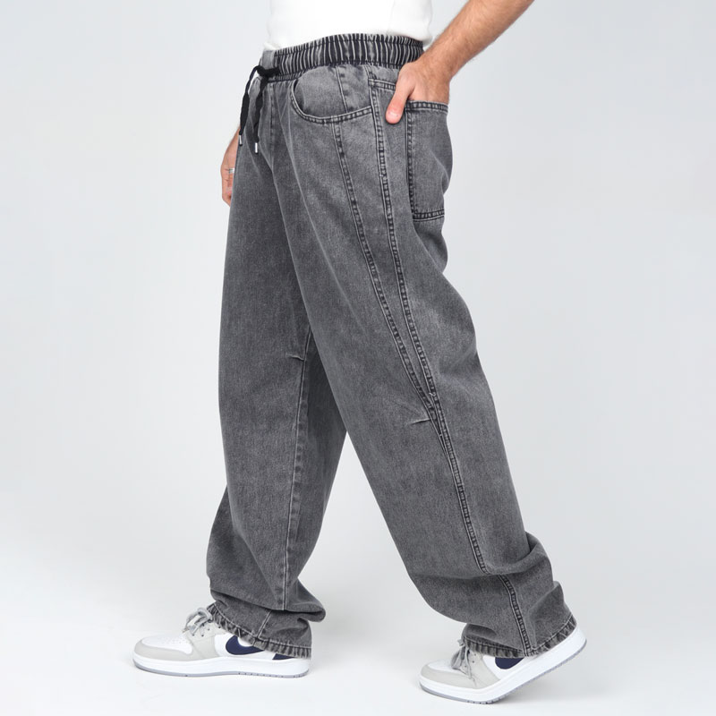 شلوار لی بالونی بگ استایل مردانه رنگ زغالی | کد 1005