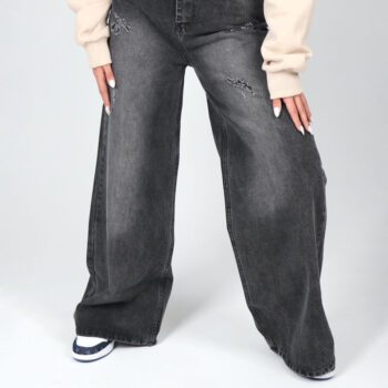 شلوار لی زنانه فول بگ زغالی زاپدار | کد 2002 ، راحتی و استایل بینقص