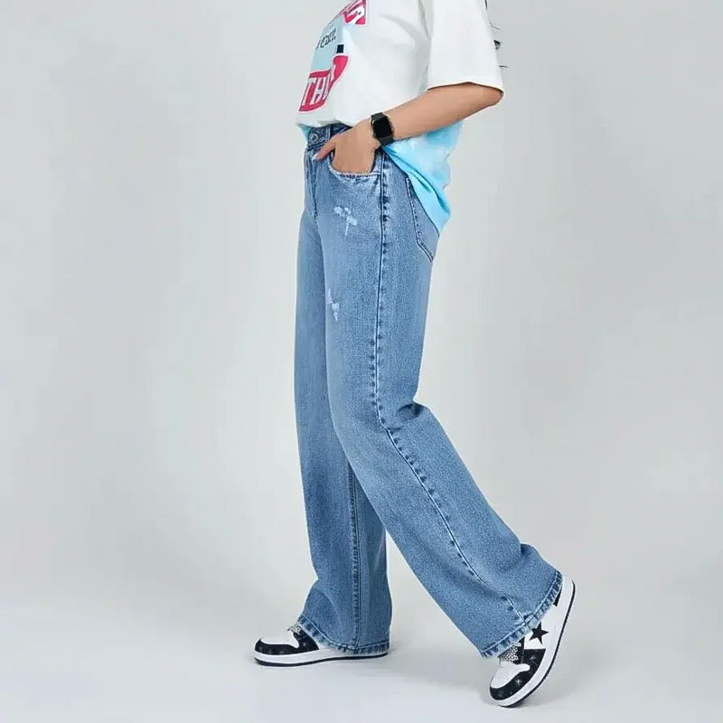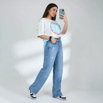 شلوار لی زنانه نیم بگ آبی زاپدار، راحتی و استایل بینقص