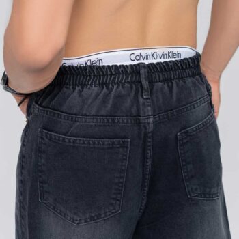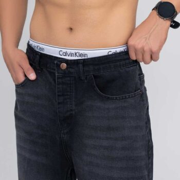 شلوار لی مردانه بگ استایل زغالی ساده کمرکش | کد 1013