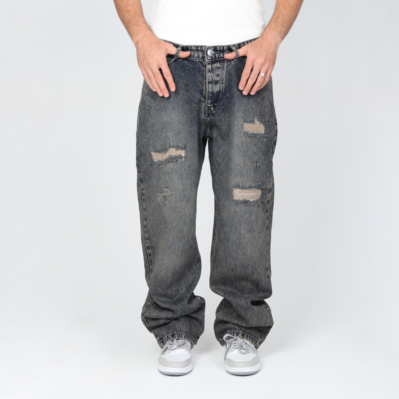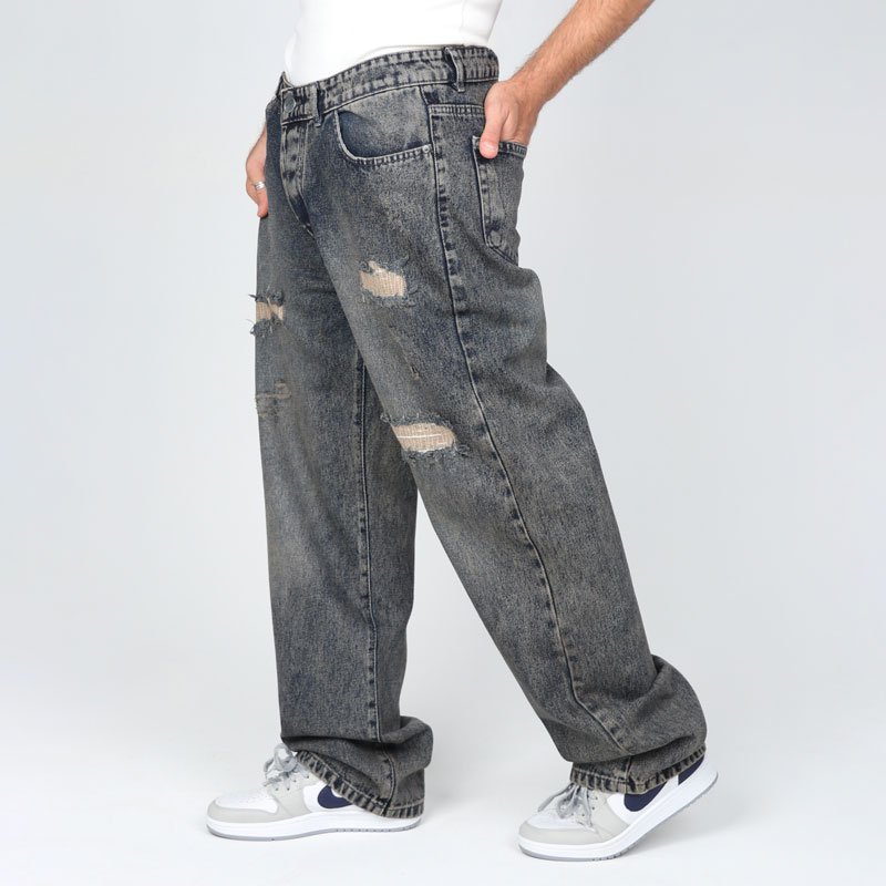 شلوار لی مردانه مدل بگ استایل زاپدار | کد 1004 ضمانت رنگ، شست و آبرفت