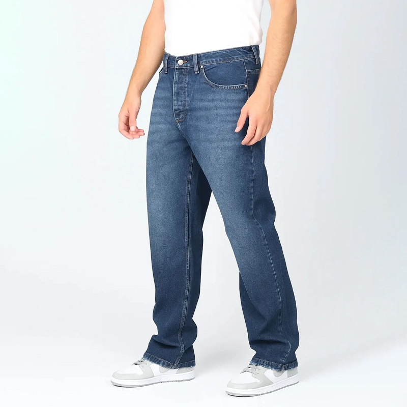 شلوار لی مردانه مدل نیم بگ آبی ساده | کد 1006