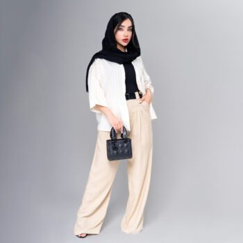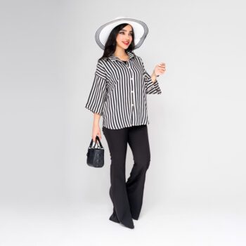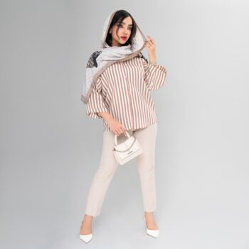 ست کردن شومیز زنانه مدل پری راه راه با اکسسوری