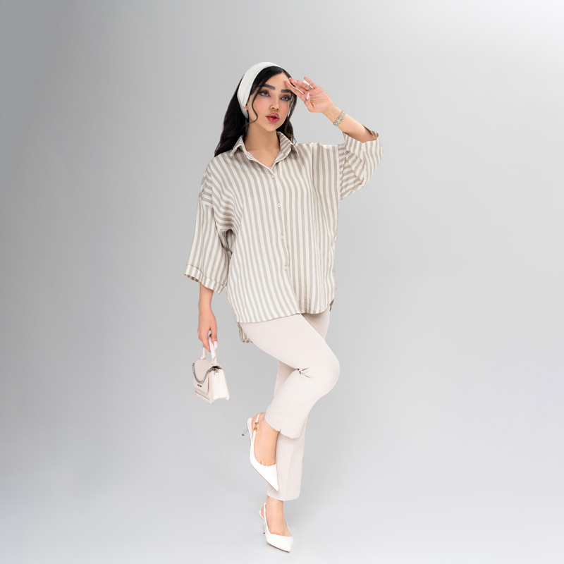 این شومیز بهراحتی با انواع کیف، کفش، ساعت و زیورآلات ست میشود. طراحی راهراه و رنگهای خنثی و شیک آن باعث میشود بدون زحمت، یک استایل منظم، جذاب و امروزی داشته باشید.