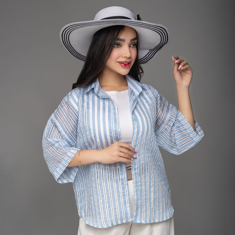 شومیز شیشه ای زنانه مدل پری راه راه کد SHOM07