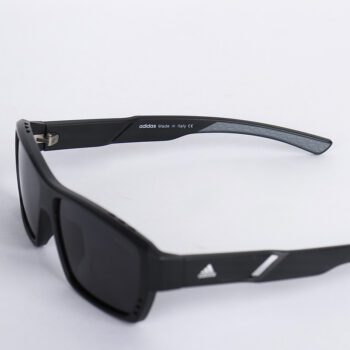 عینک مردانه مدل اسپرت ورزشی آدیداس مشکی | کد EYN25 با فریم مستطیل کشیده، دستههای فنرکشیشده و لنز دودی UV400 یک گزینهٔ ایدئال برای دویدن، باشگاه، استایل روزمره و فعالیتهای فضای باز است.