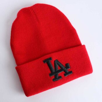 کلاه زمستانی بافتنی قرمز طرح LA | مدل اسپرت دخترانه و پسرانه ویژگیهای اصلی کلاه بافت LA قرمز
