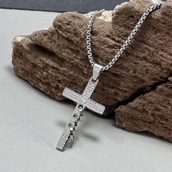 گردنبند صلیب طرح سه حلقه رنگ نقره ای