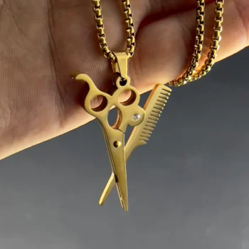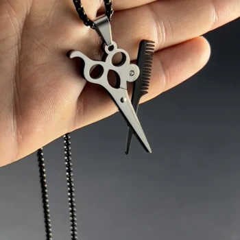 گردنبند طرح قیچی شانه کدZN-GH01 یک گردنبندفانتزی زیبا و منحصر به فرد است که با طراحی قیچی وشانه شیک و مدرن خود، جلوهای خاص به استایل شما اگه آرایشگر میباشید میبخشد. این گردنبنددرسه رنگ مشکی،نقره ای،طلایی از جنس استیل با عیار بالا ساخته شده است که مقاومت بالایی در برابر زنگ زدگی و تغییر رنگ دارد. طراحی دقیق و هنرمندانه این گردنبند، آن را به یک انتخاب ایدهآل برای هر سلیقهای تبدیل کرده است.